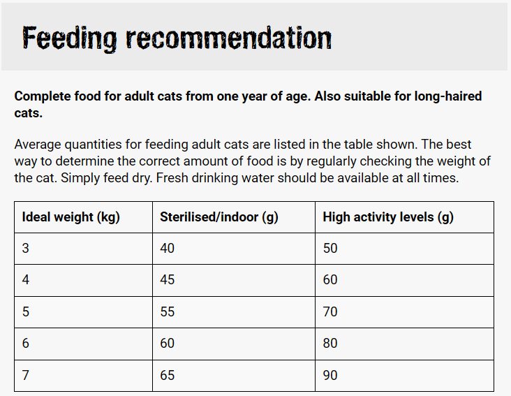 Fresh poultry meat (30%); Duck protein*¹ (18%); Rice; Poultry protein, low ash*¹ (10%); Potato starch; Poultry fat; Poultry liver*²; Rye*³; Egg*¹; Fish meal from sea fish (2.5%); Marine zooplankton (Krill)*⁴ (2.5%); Brewers’ yeast, inactivated*¹; Grape pips expeller (1.5%); Chia seed (1.3%); Kibbled carob*¹; Guar gum; Sodium chloride; Potassium chloride; Chicory inulin *¹dried *²hydrolysed *³malted *⁴ground
