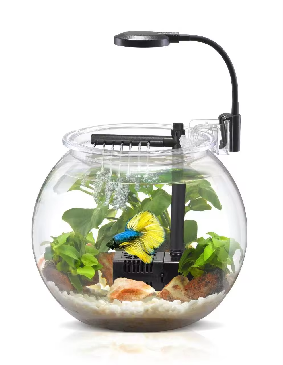 Transform your space with this sleek, all-in-one 12 liter fish bowl, specifically designed for modern homes and offices. Crafted from high quality plastic for maximum clarity and safety, this “desk darling” offers a 180° panoramic view of your underwater world. The integrated filtration system keeps water pristine while providing essential oxygen, ensuring a healthy, low-maintenance environment for betta fish, shrimp, or small aquatic plants.