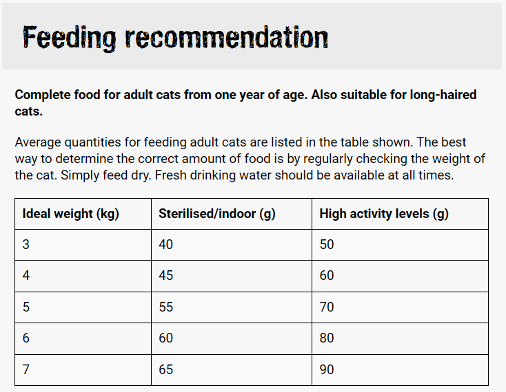 Protein 32%, Fat content 20%, Crude ash 8.5%, Crude fibre 2.3%, Moisture 10%, Calcium 1.4%, Phosphorus 1%, Sodium 0.4%