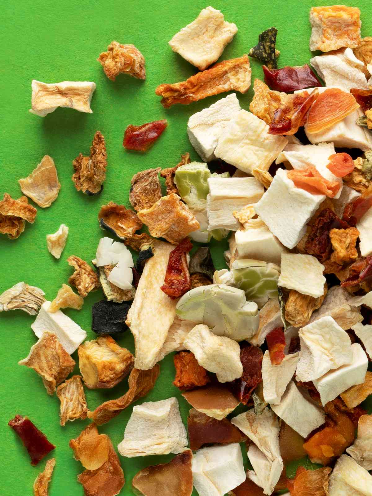 Vegetable mix – a natural treat made from dried vegetables for parakeets and parrots. It contains parsnip, zucchini, celery root, pumpkin, split peas, carrot, and sweet red pepper, which diversifies the bird’s daily diet and serves as an excellent source of fiber, vitamins, macro- and micronutrients. An easy way to add vegetables to the menu and support your feathered pet’s health.